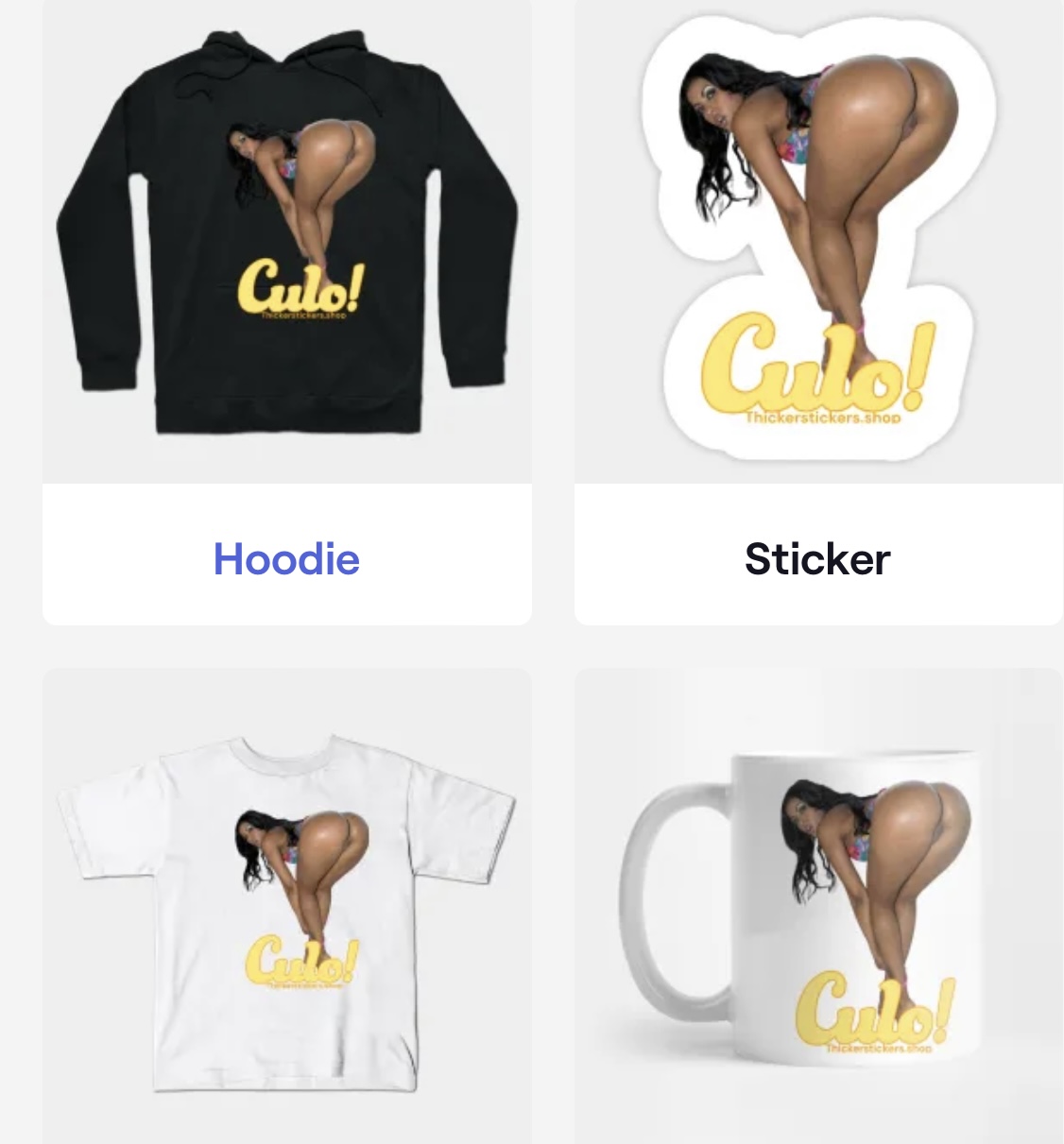 Hot Thick Latin Girls Callipygous. Nude art merchandise, cosplay, stickers, sexy magnets, adult-Caliente Girls shirts, naughty Latinas boobs, butts-and babes gifts from #thickerstickers