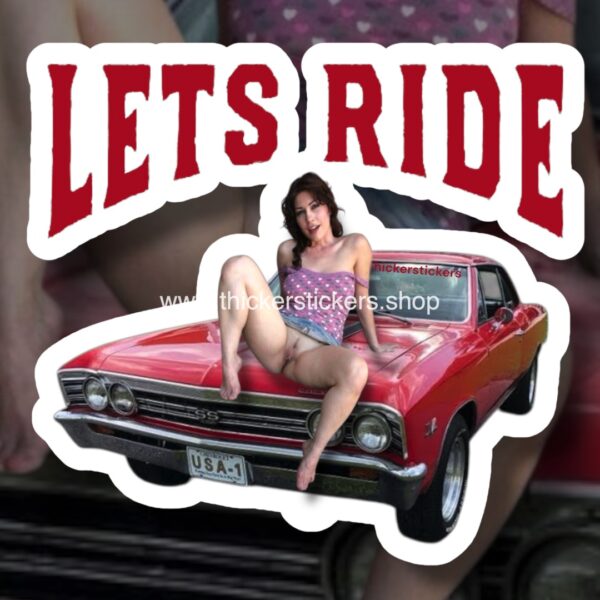 Lets Ride Classic Red Chevy Chevelle Nude Model Pin Up Thickerstickers Body art stickers and magnets
